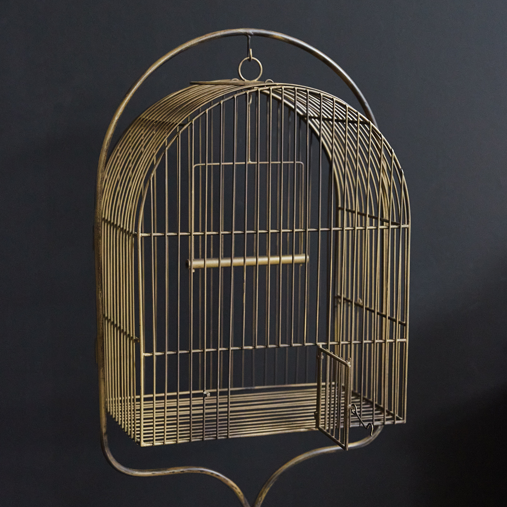 Antique Brass Birdcage with Stand