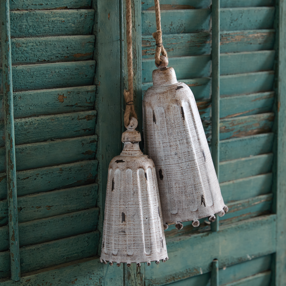 Set of Two Whitewashed Metal Bells Set of Two Whitewashed Metal Bells Set of Two Whitewashed Metal Bells
