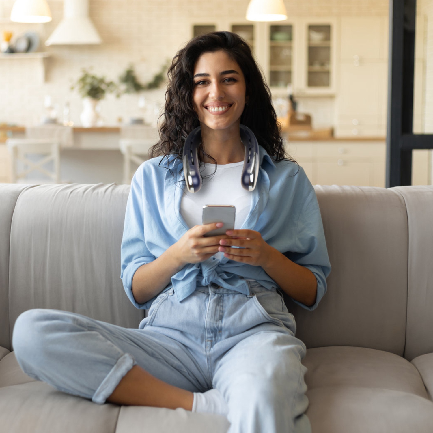 Simply wear this unique bladeless fan around your neck for instant coolness and hands-free operation in any situation. The innovative bladeless design is pintch-proof, safe for everyone. Come with 5 adjustable wind speeds and 360° all-around air flow, this portable neck cooler satisfy all your demands. Powered by type-c rechargeable battery, it supports up to 6hours continuous blowing after fully charged. Lightweight and stylish design is definitely a perfect summer companion for home, office and outdoor activities.