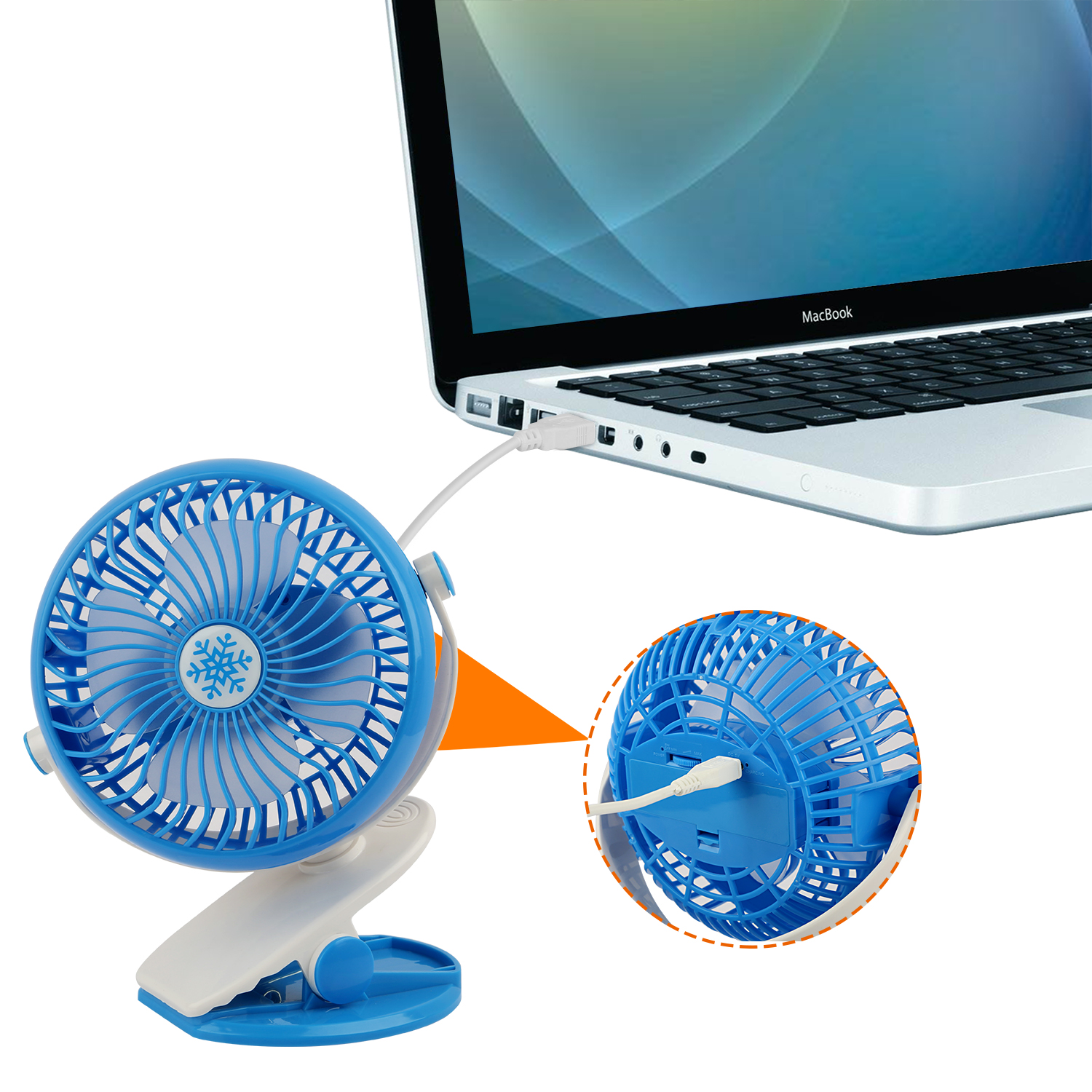 This portable USB mini fan can be used as not only a desk fan, but also a clip fan. The wind speed and direction is allowed to adjust as desired and on high it can put out a good amount of air if regulate fan speed to be fast. It is perfect addition to a stroller wagon and easy to clip to the frame, parents’ supervision will be required when the fan is working because a baby is likely to get fingers inside the slots and get hurt. Besides, you can recharge it through a USB car charger, USB AC adapter, or laptop. Note: Check the battery is put correctly into the power compartment according to the positive pole and the negative pole when charging. Otherwise that may damage this fan.