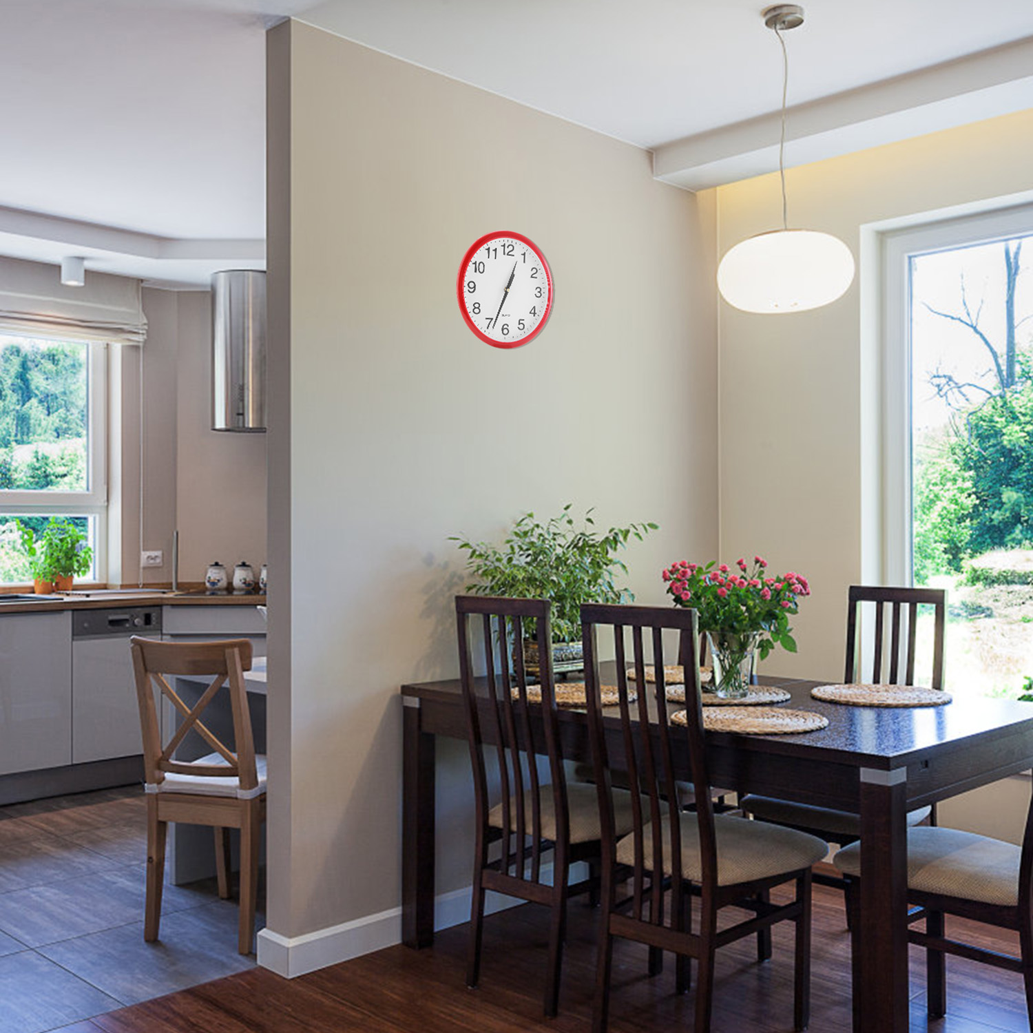 Our wall clock equipped with high-end quartz movement to offer accurate time keeping. Quiet smooth continuous sweep second hand movement ensure a good sleeping and working environment perfect for use in living room, bedroom, office, classroom, café, workshop, etc. with large black number, evident black pointers and adoption of anti-fog glass which make it easy to see from any corner of your room. Made from premium ABS material which offers solid construction and smooth surface to remain well function and dry in any weather condition. Meanwhile, not contain toxic or harmful substances, no worry of any harm to your health or environment. Simply install 1 AA battery and hang it on the wall, make it not only work as a clock, but also a decoration of simple and elegant living space.
