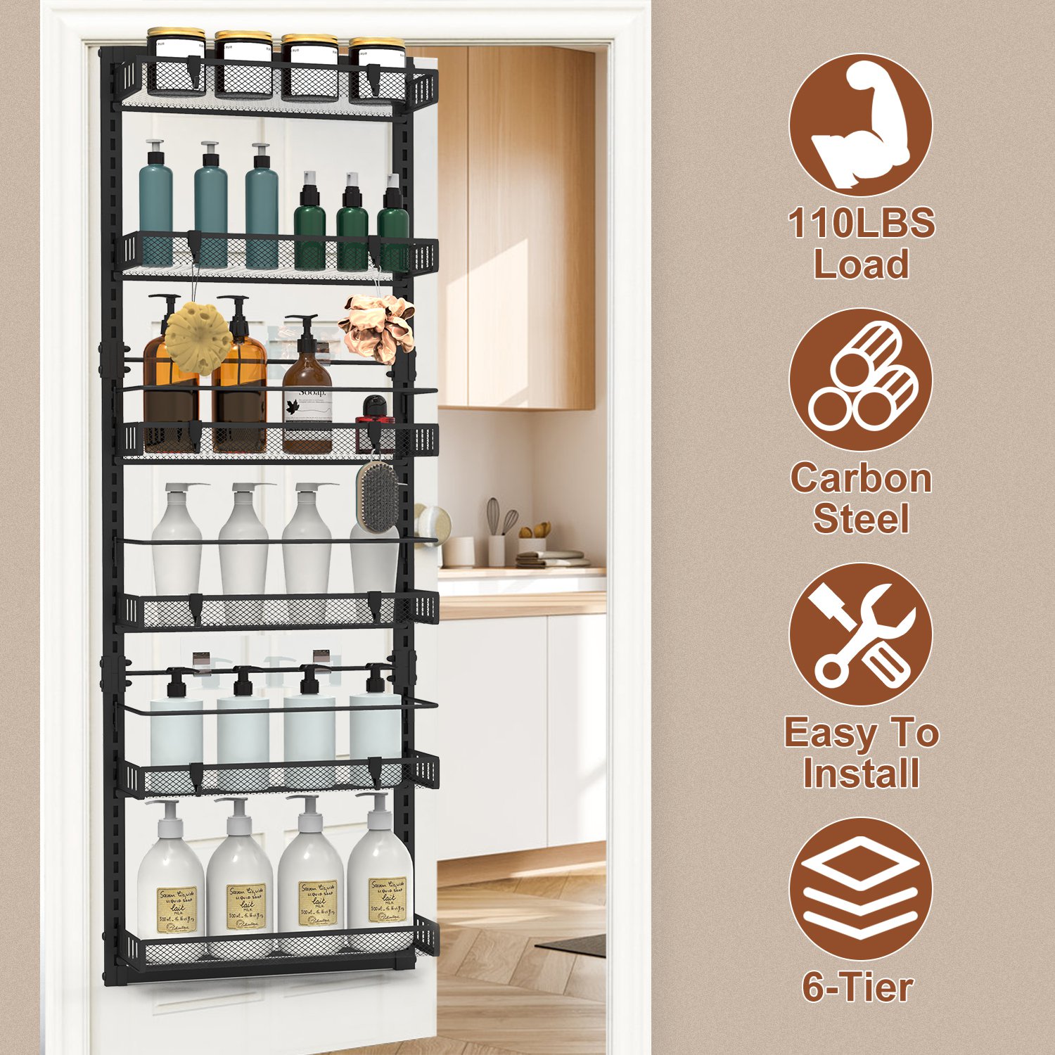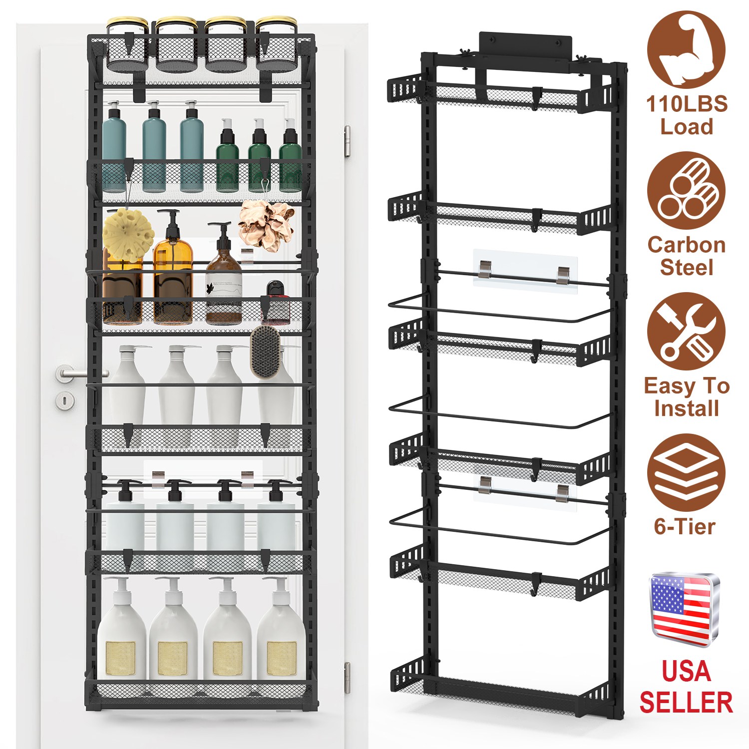 Home > Over The Door Pantry Organizer 6-Tier Pantry Door Organizer Carbon Steel 110LBS Loading Easy Install Behind Door Storage For Closet Kitchen Bathroom 5