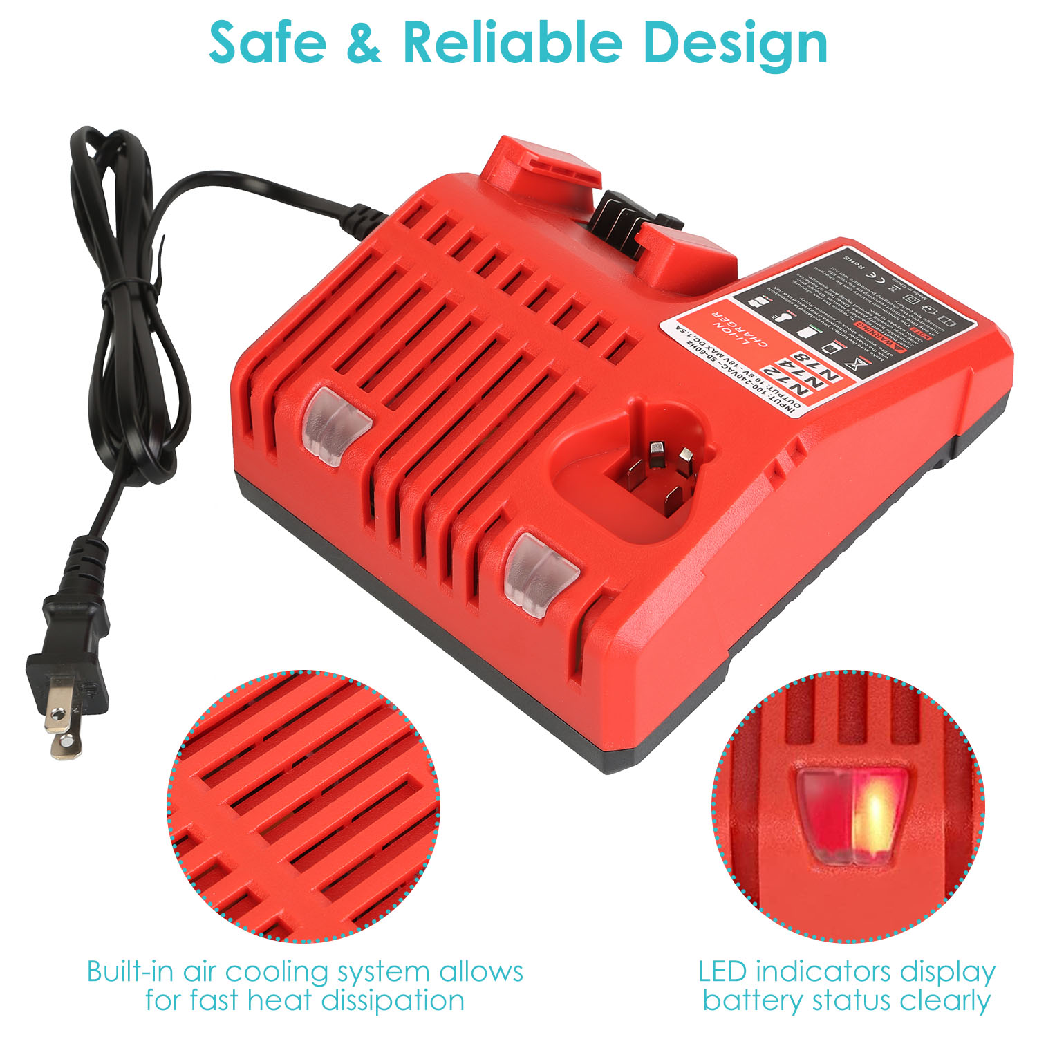 This is a Multi-Voltage Charger Replacement which fits for Milwaukee Battery Charger M12 & M18 48-59-1812 48-59-1808, and Milwaukee 10.8V-18V M12 M14 M18 Lithium-ion battery. LED indicators help you diagnose battery status including defective, charging, full charged, hot or cold battery.