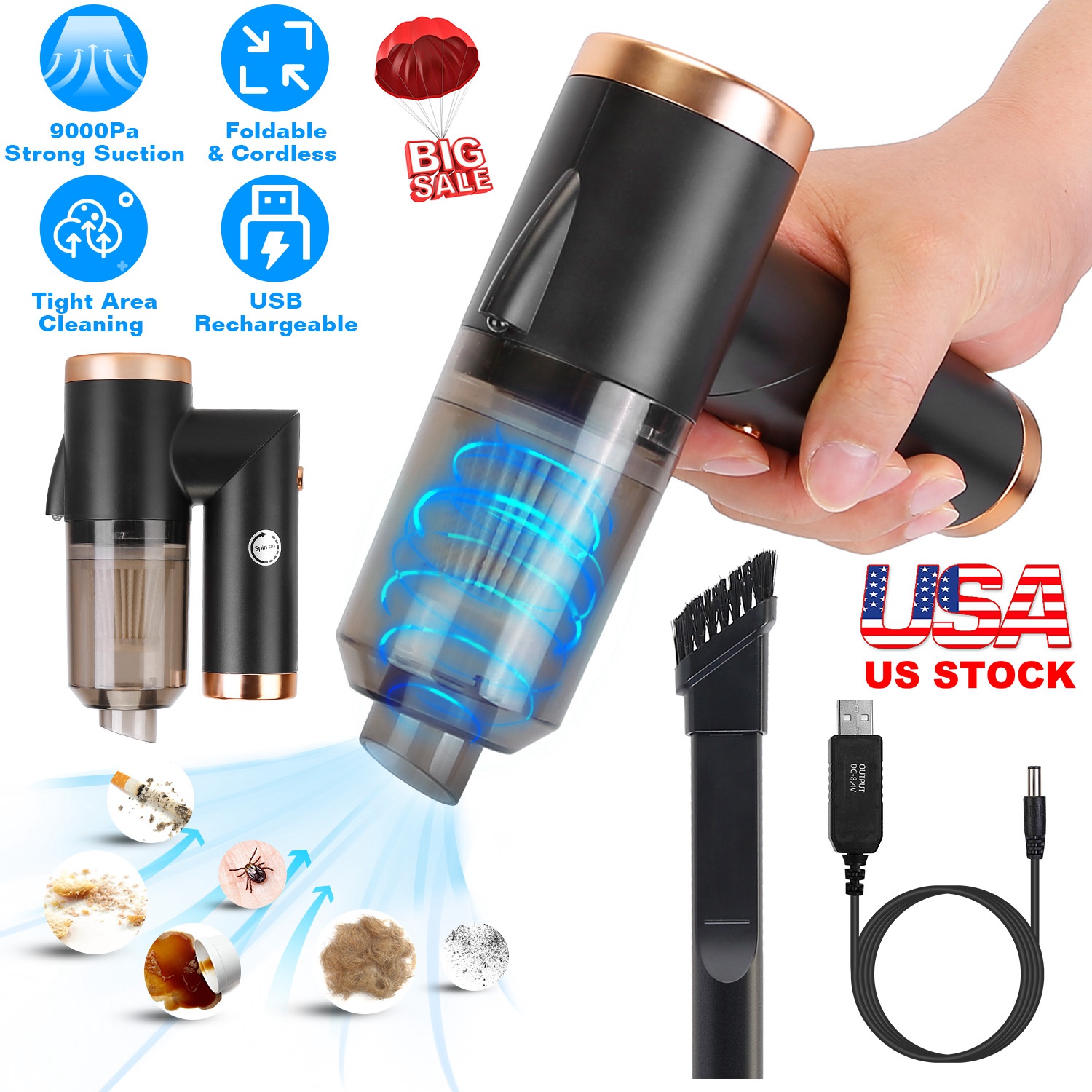 Cleaning your room, car's interior, workspace, carpet, and especially tight spaces has always been a challenge to do with the regular vacuum cleaners. This portable vacuum cleaner can easily reach these hard-to-reach areas and takes less space. 9000 Pa strong suction power enables you to clean clouds of dust and crumbs, perfect for those who have pet furs all over their house and car enthusiasts who want to keep car interiors clean all the time. Moreover, cordless design makes cleaning easier and faster with no tangled cords getting in the way when moving around.