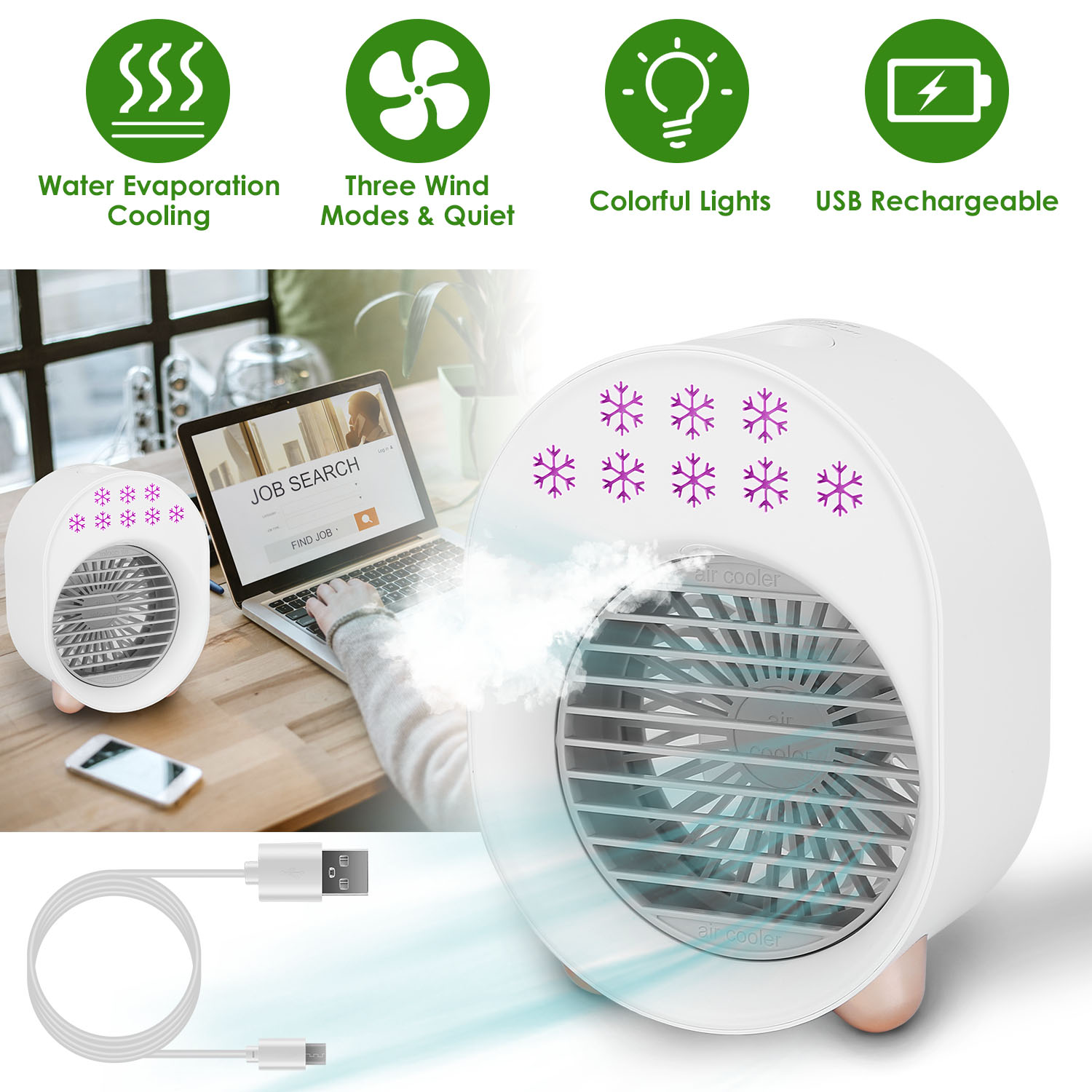 Home > 4 In 1 Portable Mini Desktop Air Conditioner Fan Water Mist Cooling Fan USB Rechargeable Humidifier Fan Evaporative Air Cooler 3 Wind Modes Colorful L