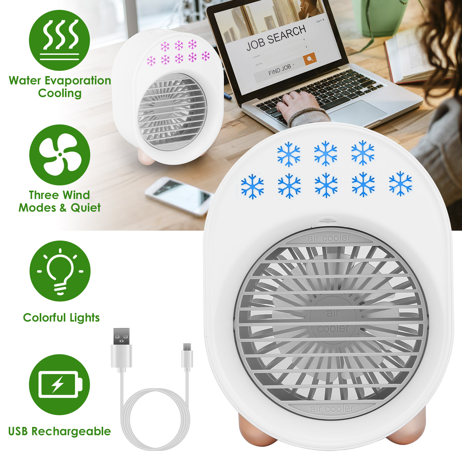 4 In 1 Portable Mini Desktop Air Conditioner Fan Water Mist Cooling Fan USB Rechargeable Humidifier Fan Evaporative Air Cooler 3 Wind Modes Colorful L
