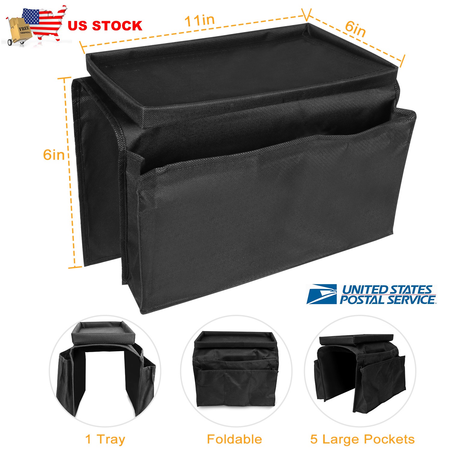 6 Pocket ArmRest Organizer Couch Sofa Bag Remote Control Phone Storage Holder Snacks Tray