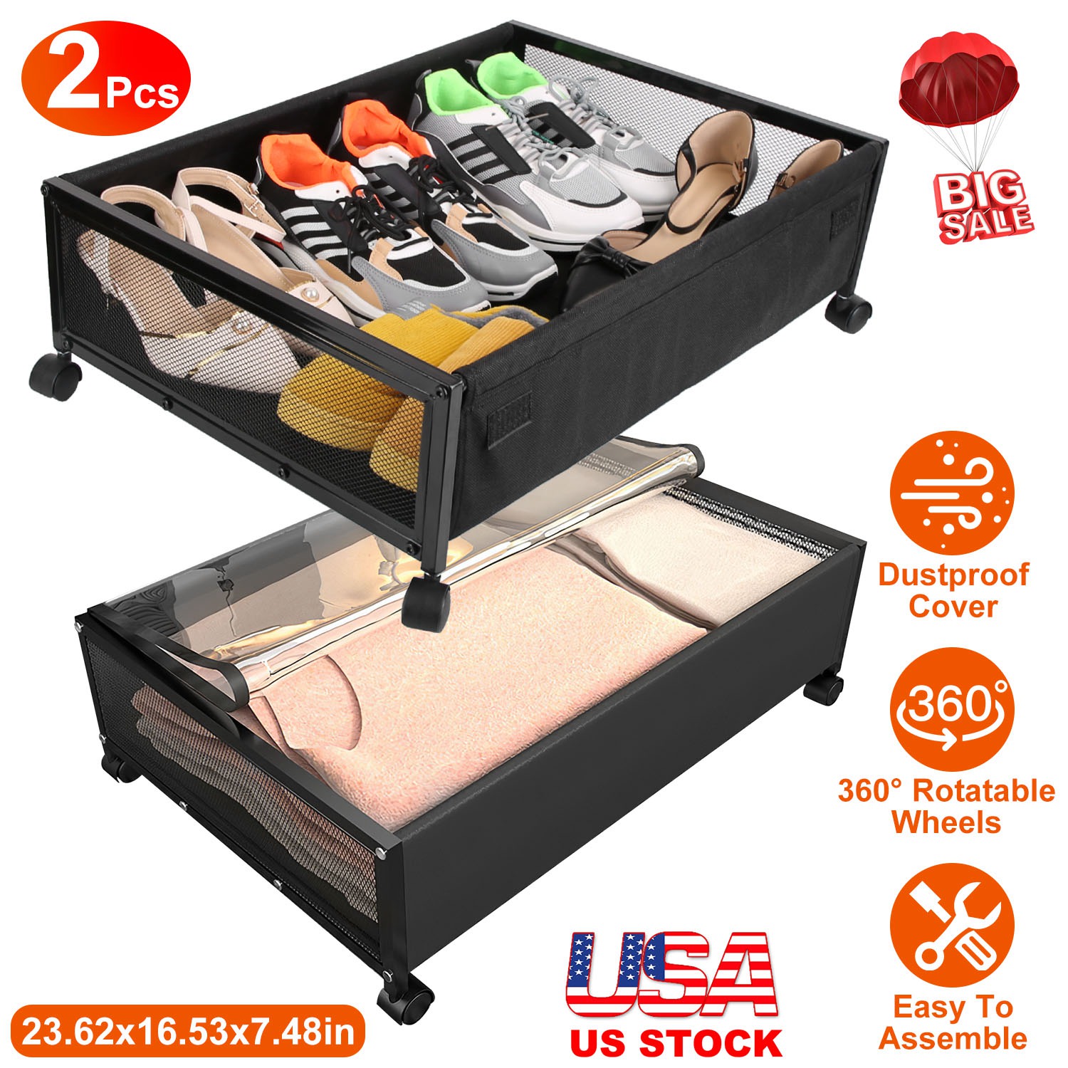 Home > 2Pcs Under Bed Storage Containers with 360° Rotatable Wheels Visible Dustproof Cover Under Bed Drawer with Clear Window Bedroom Storage Organizer