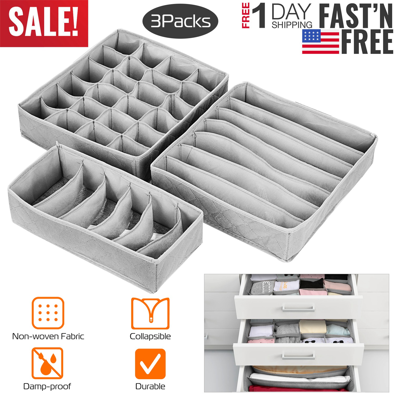 3 Pack Sock Organizer Box Foldable Damp Proof Storage Drawers Multi-cells Underwear Tie Container for Wardrobe Closet Cabinet
