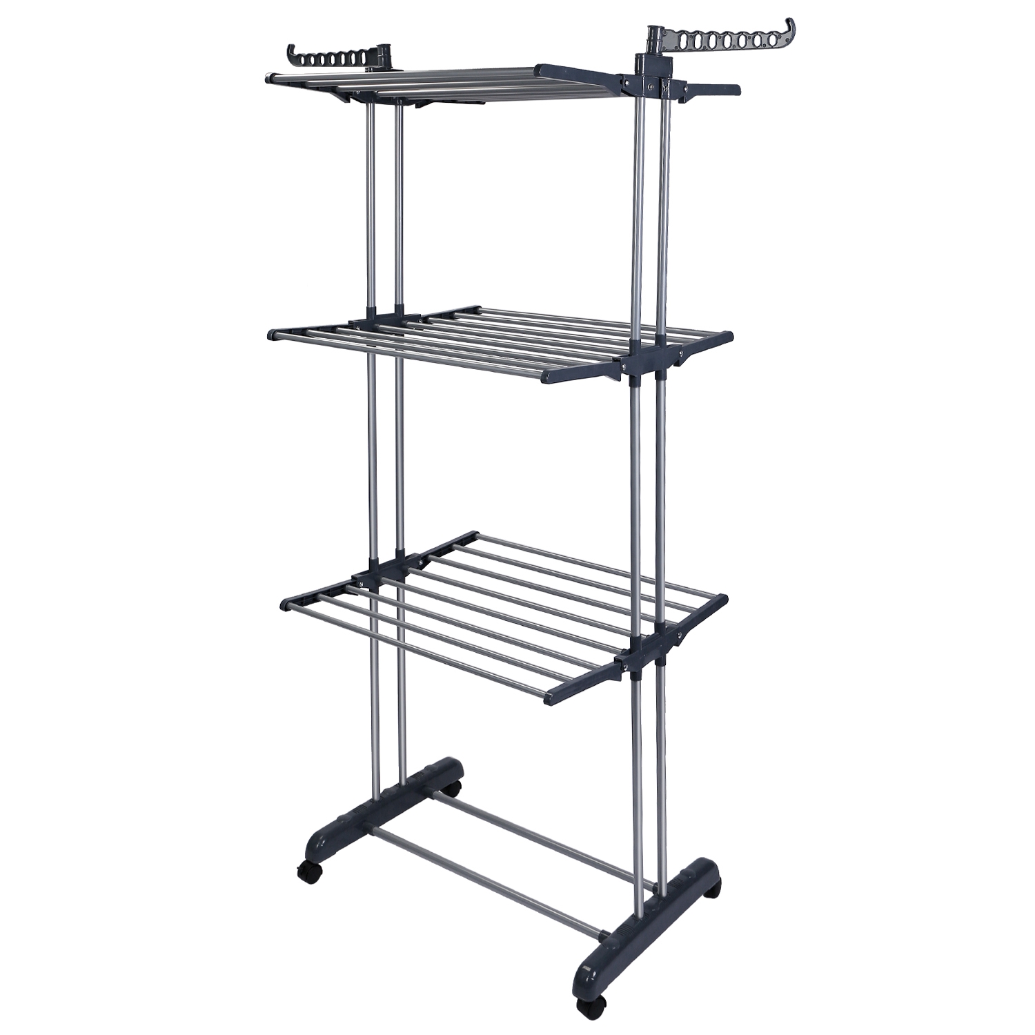 Clothes Drying Rack Rolling Collapsible Laundry Dryer Hanger Stand Rail Shelve Wardrobe Clothing Drying Racks w/ Dual Side Wings