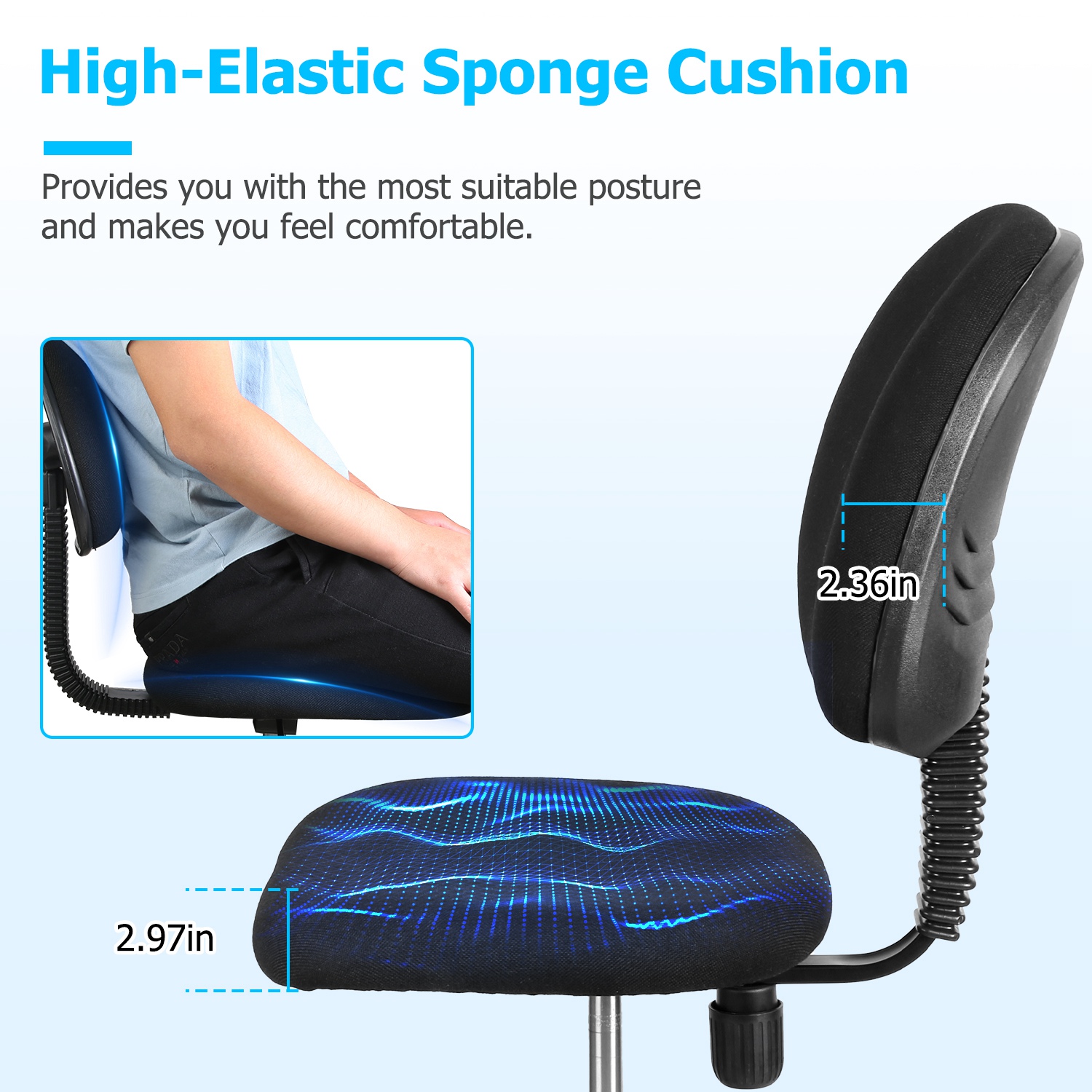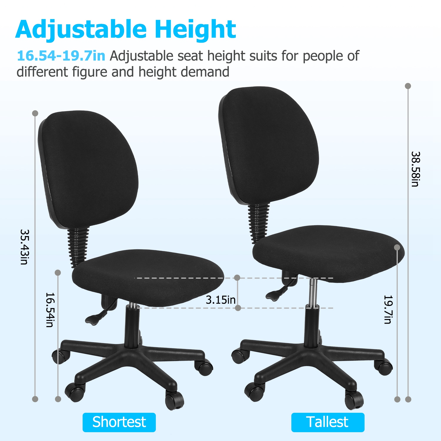 Home > Office Chair Ergonomic Low-Backrest Armless Task Chair with 250LBS Load Bearing Thick Padded Seat Backrest Adjustable Height 360° Swivel Wheels