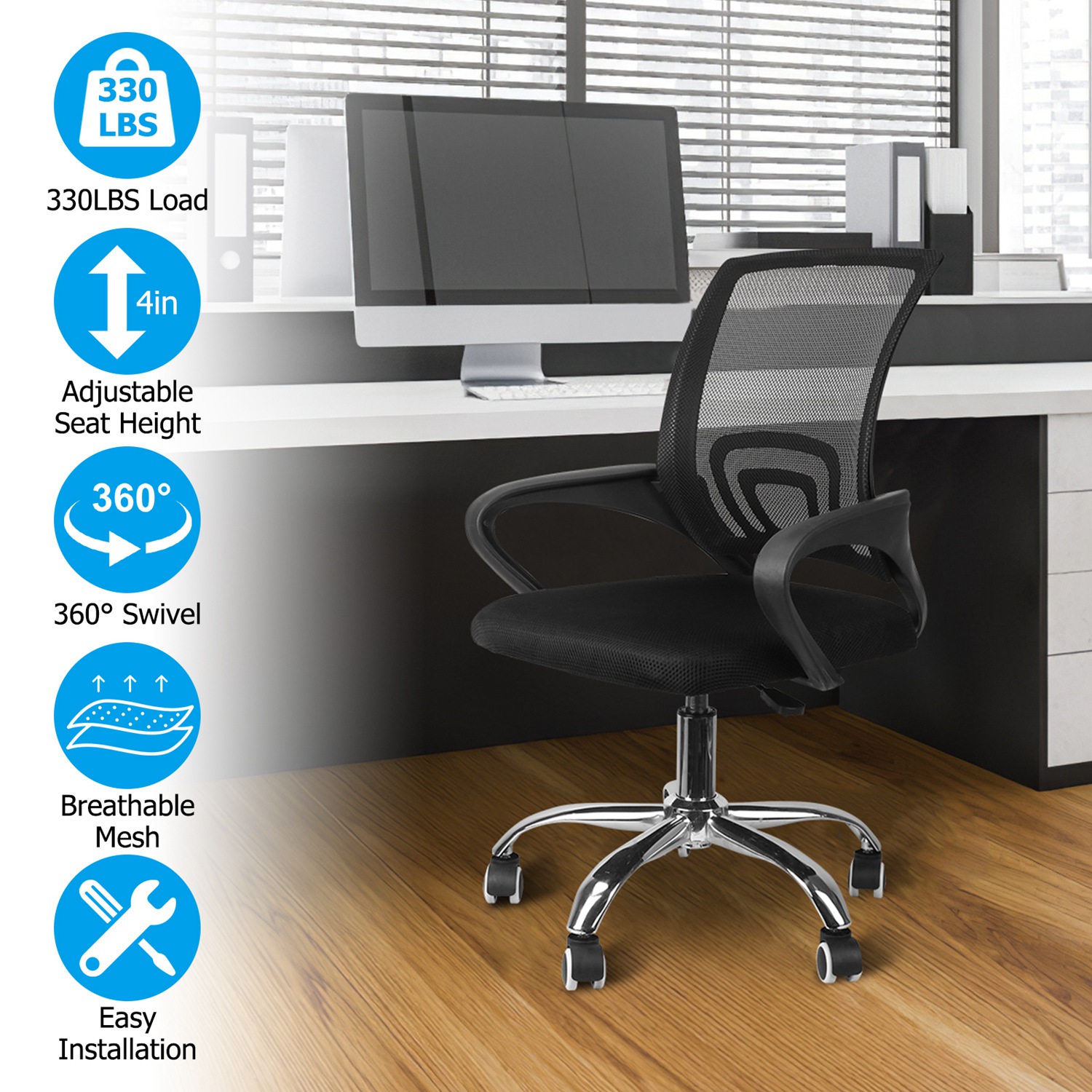 Come with high-elastic sponge cushion seat and ergonomic mesh backrest, our office chair is super soft and breathable for maximum comfort. 4in Adjustable seat height and 360° swivel design allow you to adjust to the most comfortable height to sit or rest on it. You can also move it to anywhere easily with 5 smooth rolling casters. Great to use it as an ergonomic office chair, gaming chair, home desk chair, etc..