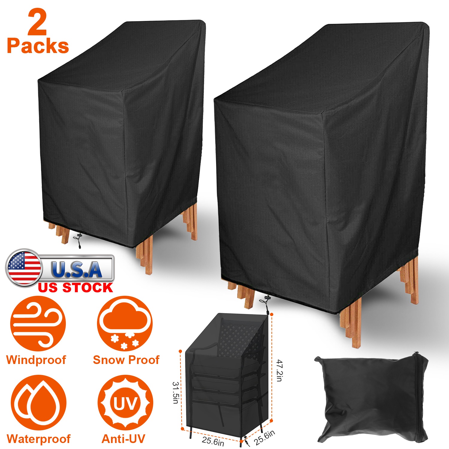 Home > 2 Packs Patio Chair Covers Waterproof Outdoor Furniture Protector Anti-UV Stacking Chair Cover 47.2"x25.6"x25.6" w/ Drawstring Storage Bag