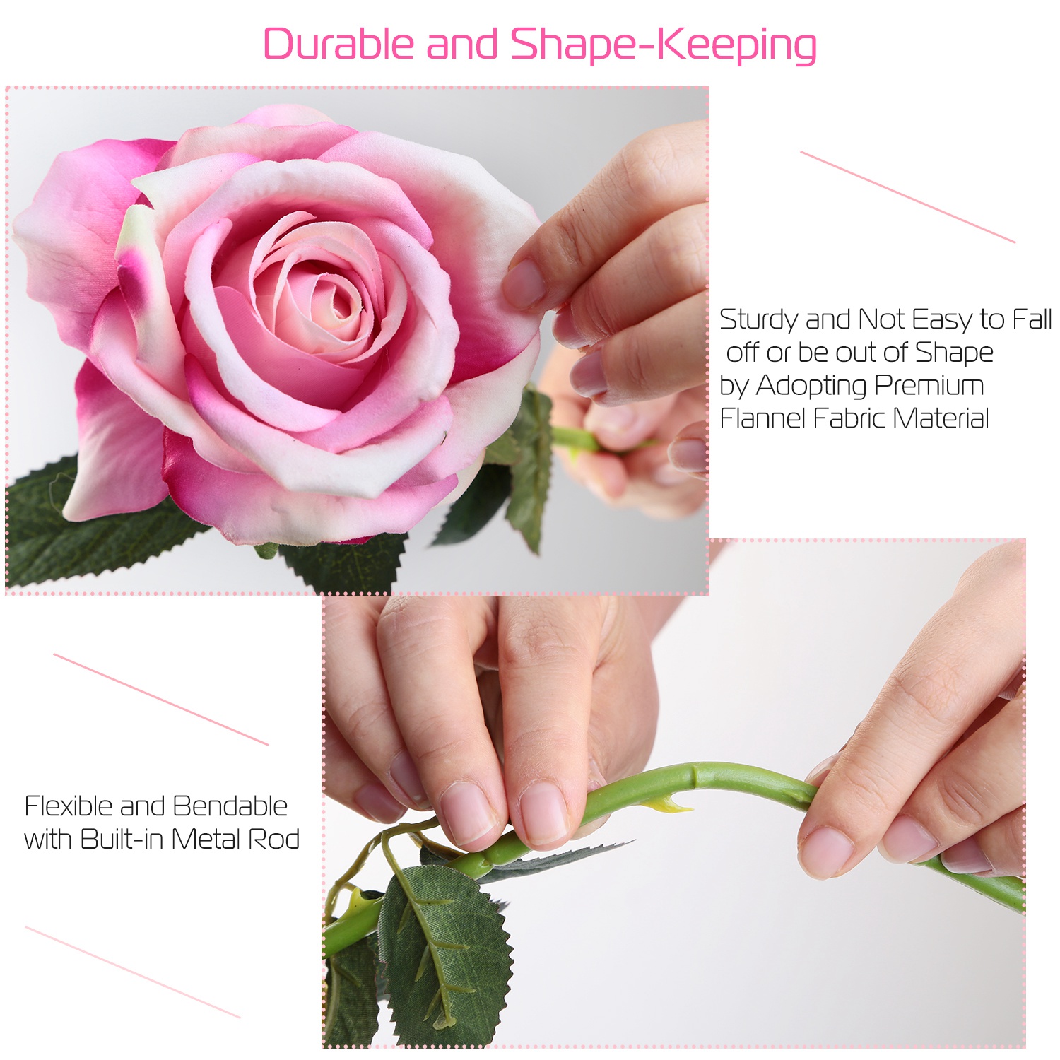 Made from eco-friendly flannel fabric material, our artificial rose is sturdy, durable and not easy to fall off or be out of shape. And adopting premium stimulation process, from the petal to the stem, our artificial rose naturally looks like real rose. Additionally, coming with 10 Pcs, our artificial allows you to variously decorate your home, office or any place you want, our artificial rose not only can decorate your home but also your mood. Have a nice day!