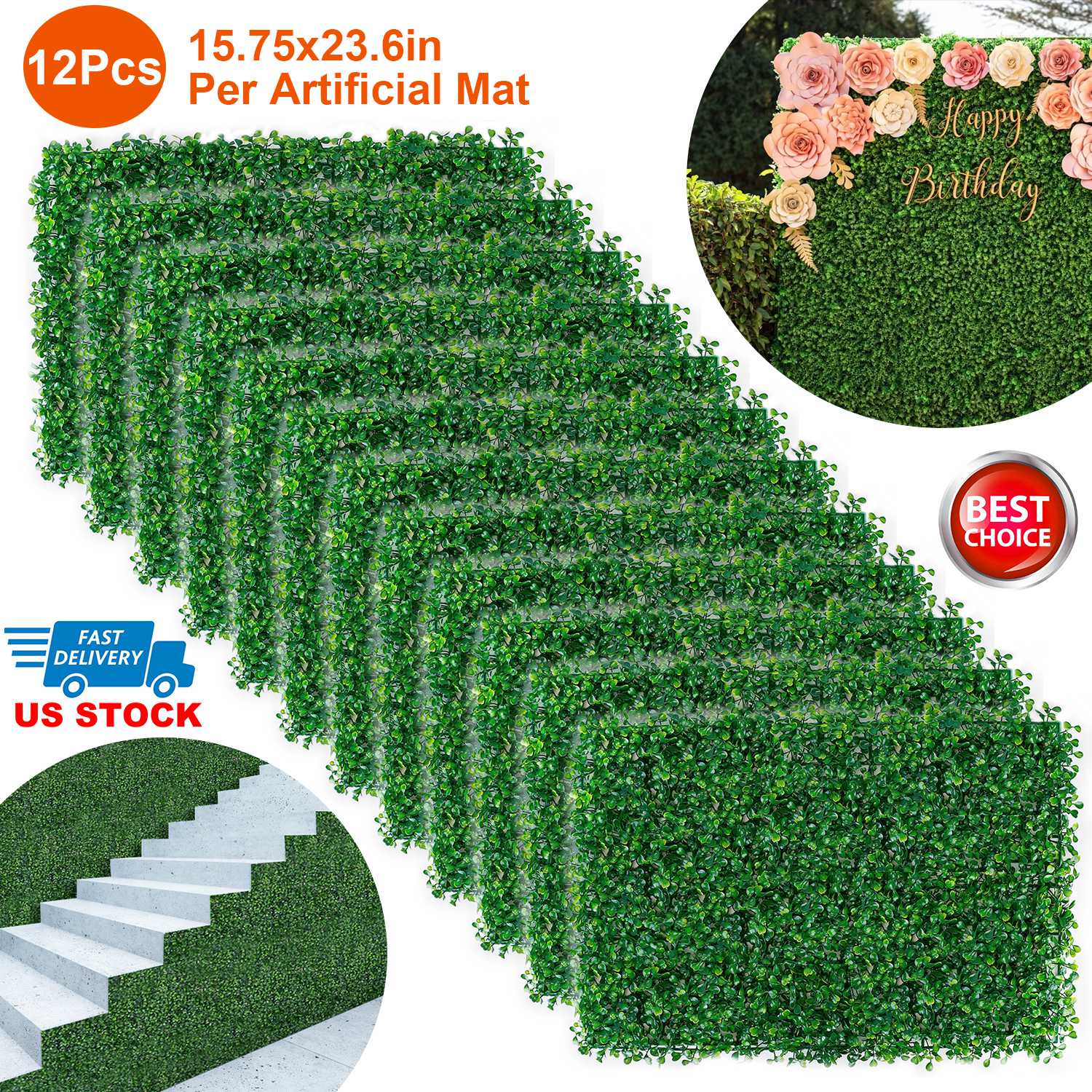 12Pcs 23.6x15.75in Artificial Boxwood Topiary Hedge Plant Grass Backdrop Fence Privacy Screen Grass Wall Decoration For Balcony Garden Fence